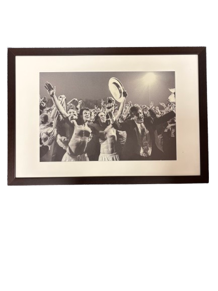Ingelijste zwart-wit foto van de viering van het kampioenschap van AZ in de Eerste Divisie in het seizoen 1997–1998. Op de voorgrond staan onder meer Dirk Scheringa, Bukemolen en Kooyman, vastgelegd tijdens dit feestelijke promotiemoment.