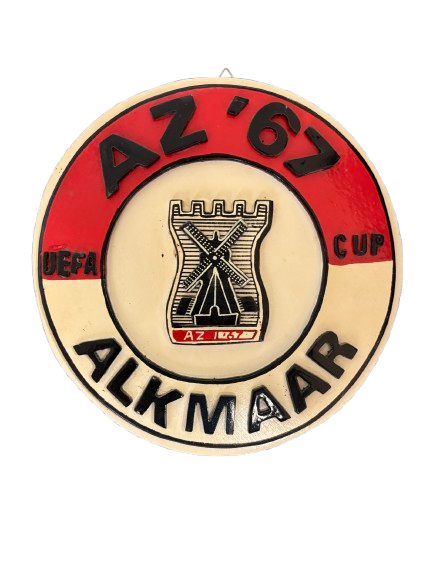 Decoratief plaquette met het klassieke AZ ’67 Alkmaar-logo, uit de UEFA Cup-periode van de club. Een authentiek aandenken aan de Europese wedstrijden van AZ.