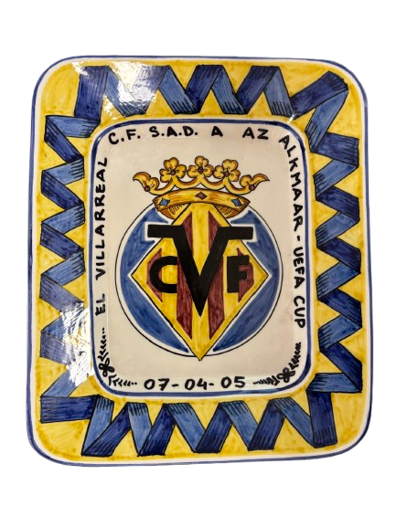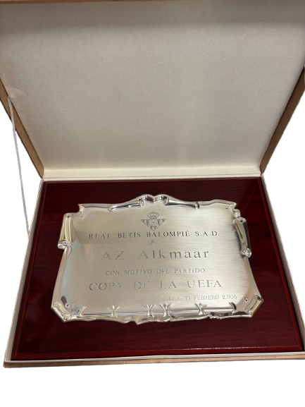 Herinneringsplaquette van de UEFA Cup-wedstrijd Real Betis Balompié – AZ Alkmaar (2006). Een officieel relatiegeschenk dat de internationale ontmoetingen en sportieve prestaties van de club markeert.