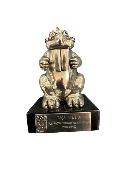 Herinneringsbeeldje van de UEFA Cup-wedstrijd FC Paços de Ferreira – AZ Alkmaar (2007). Een speels en uniek aandenken aan een Europese uitwedstrijd en de internationale campagne van AZ.