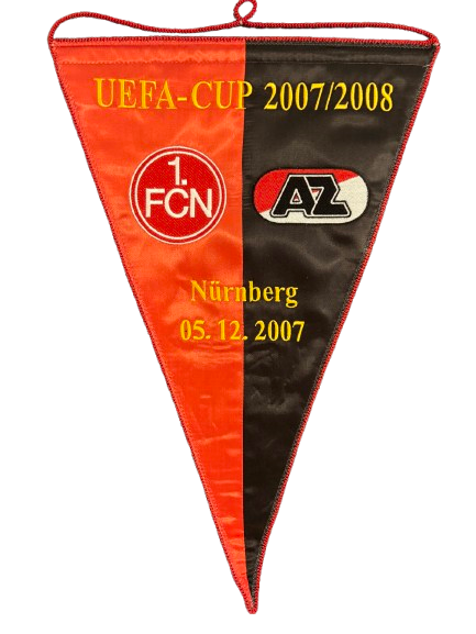 Officieel vaandel van de UEFA Cup-wedstrijd 1. FC Nürnberg – AZ uit het seizoen 2007/2008, gespeeld op 5 december 2007 in Nürnberg. Een authentiek aandenken aan deze Europese ontmoeting.