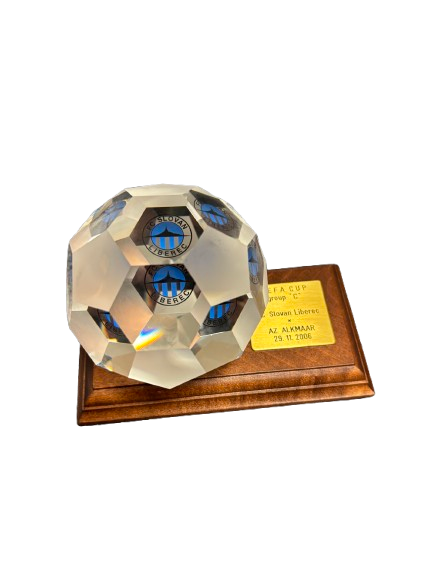Kristallen voetbal van de UEFA Cup-wedstrijd Slovan Liberec – AZ Alkmaar op 23 november 2006. Een officieel relatiegeschenk dat deze Europese ontmoeting markeert.