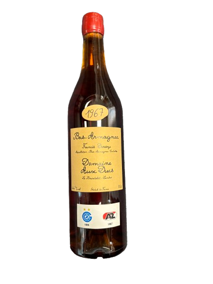 Fles Bas Armagnac uit 1967 van Domaine Huc Duc, verkregen van Grasshopper Club Zürich. Een bijzonder relatiegeschenk dat de internationale band en ontmoetingen tussen beide clubs weerspiegelt.