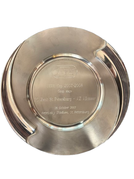 Herinneringsschaal van de UEFA Cup-wedstrijd AZ Alkmaar – FC Zenit St. Petersburg, gespeeld op 6 maart 2003. Een officieel relatiegeschenk dat deze Europese ontmoeting markeert.