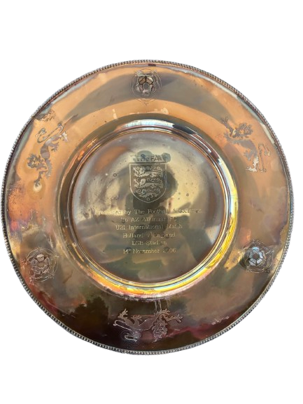 Zilveren presentatieschaal van The Football Association (Engeland), uitgereikt aan AZ Alkmaar ter gelegenheid van de U21 interland Nederland – Engeland. De schaal vermeldt de wedstrijd in het DSB Stadion op 14 november 2006 en vormt een officieel aandenken aan deze internationale ontmoeting.