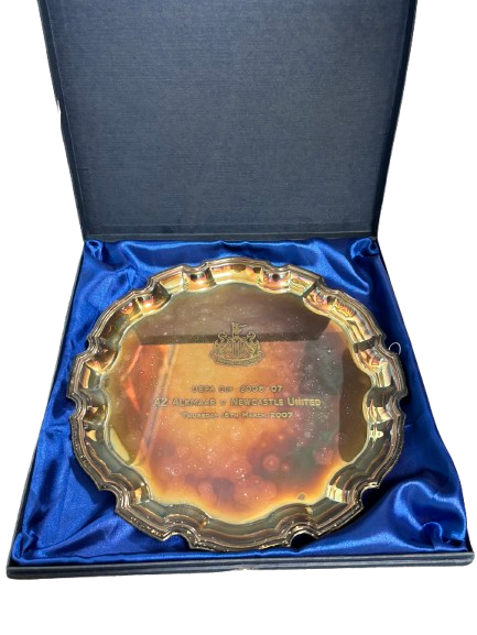 Herinneringsschaal van de UEFA Cup-wedstrijd AZ – Newcastle United (2007). Een uniek aandenken aan een Europese ontmoeting en de internationale ambities van de club.