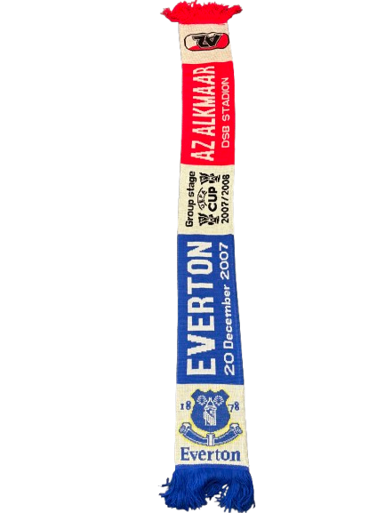 Officiële sjaal van de UEFA Cup-wedstrijd AZ Alkmaar – Everton, gespeeld op 20 december 2007 in het DSB Stadion. Een authentiek aandenken aan een Europese groepswedstrijd en de internationale campagne van AZ.