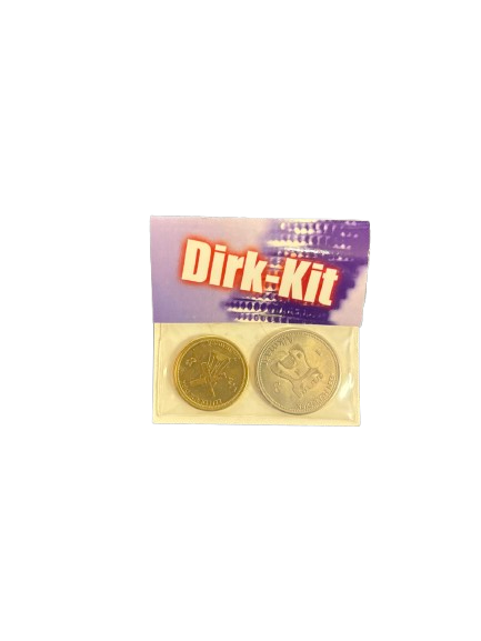 Set van twee “Dirk Kit”-munten, gebruikt als betaalmiddel binnen het DSB Stadion van AZ. Bezoekers konden deze munten gebruiken voor consumpties tijdens wedstrijden. Een karakteristiek object uit de periode van Dirk Scheringa en de DSB Bank.