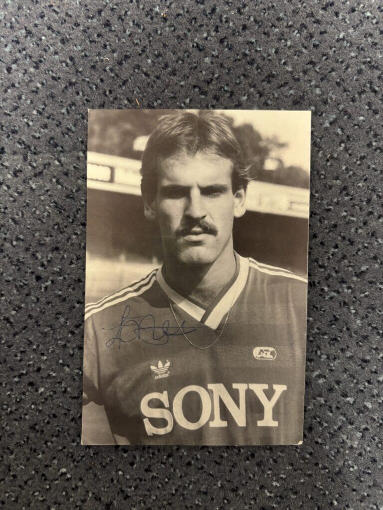 Gesigneerde spelersfoto uit de jaren 80 waarin AZ speelde met SONY als hoofdsponsor. Een persoonlijk en historisch aandenken dat teruggrijpt op een eerdere generatie binnen de club.
